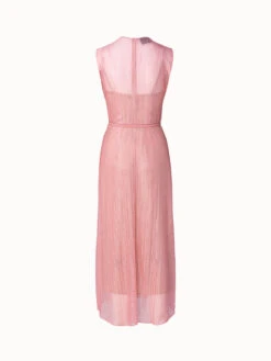 This sleeveless dress is airy and light for spring. A detachable cape scarf allows you to change up your look, while a belt cinches in your waist. Features a front slit and side slits.