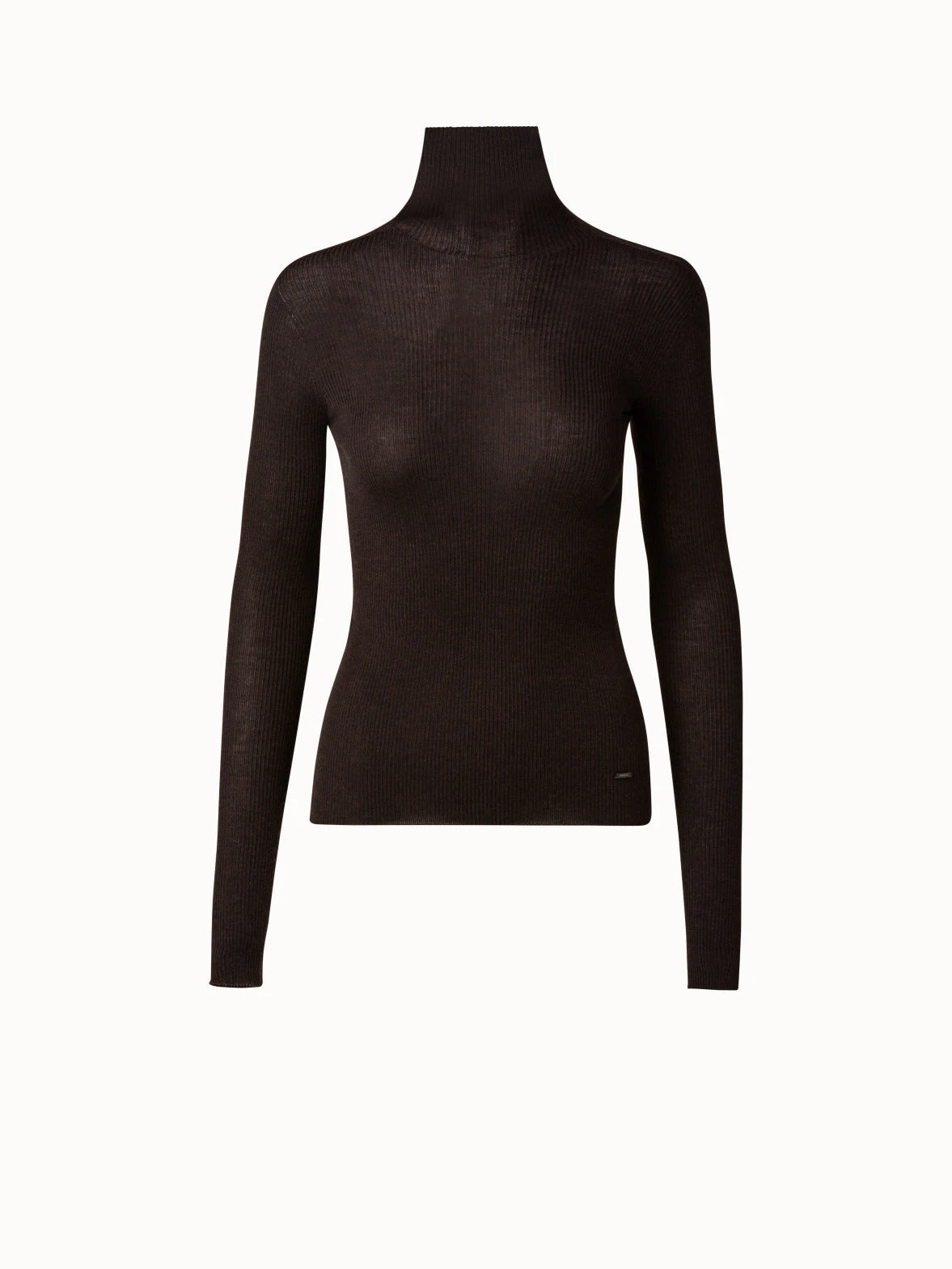This seamless fine gauge Akris rib knit pullover is created for comfortable wear all year round. Crafted in cashmere and silk, it is soft and soothing against your skin and has an elegant look. It works perfectly as a standalone piece and for layering when temperatures drop.