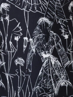 Displaying sketches by creative director Albert Kriemler, the Croquis print showcased on this sheath dress of Akris Spring 2023 tells a very personal story. Witty and charming, it was designed by his team as an anniversary surprise.