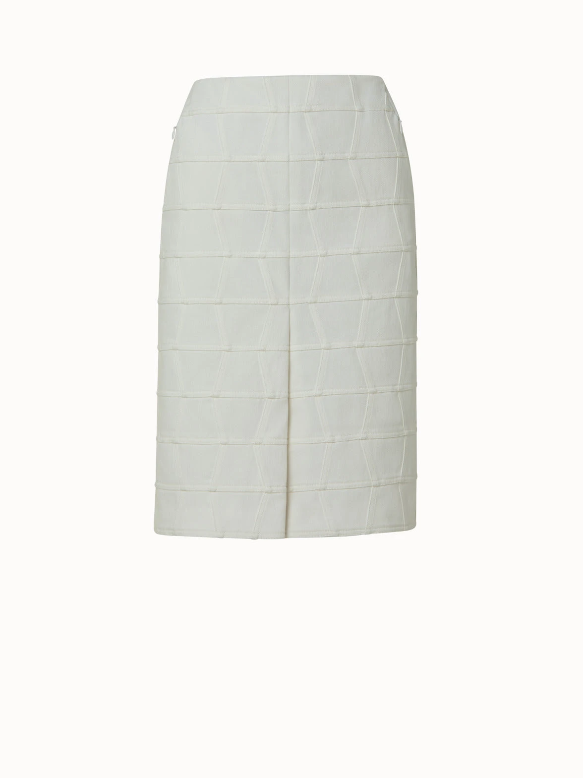 AKRIS Cotton Stretch Denim Pencil Skirt With Mirrored Trapezoid Front