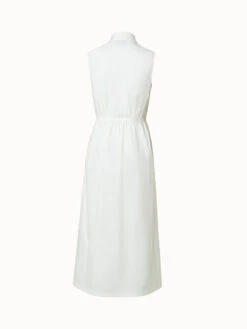 Shaped from airy and comfortable cotton stretch poplin to a flattering sleeveless silhouette, this dress is defined by a shirt collar, cinched waistline, and full skirt with apron detail. The concealed button placket completes the clean look – the perfect staple for an elegant and subdued outfit.