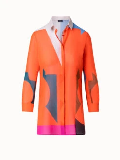 The Akris blouse is a versatile and chic addition to any wardrobe that is turned into a statement piece with a colorful Composed Letters print. Crafted in soft and lightweight cotton voile, this long sleeve blouse features a shirt collar and concealed button closure for a sleek and timeless look.