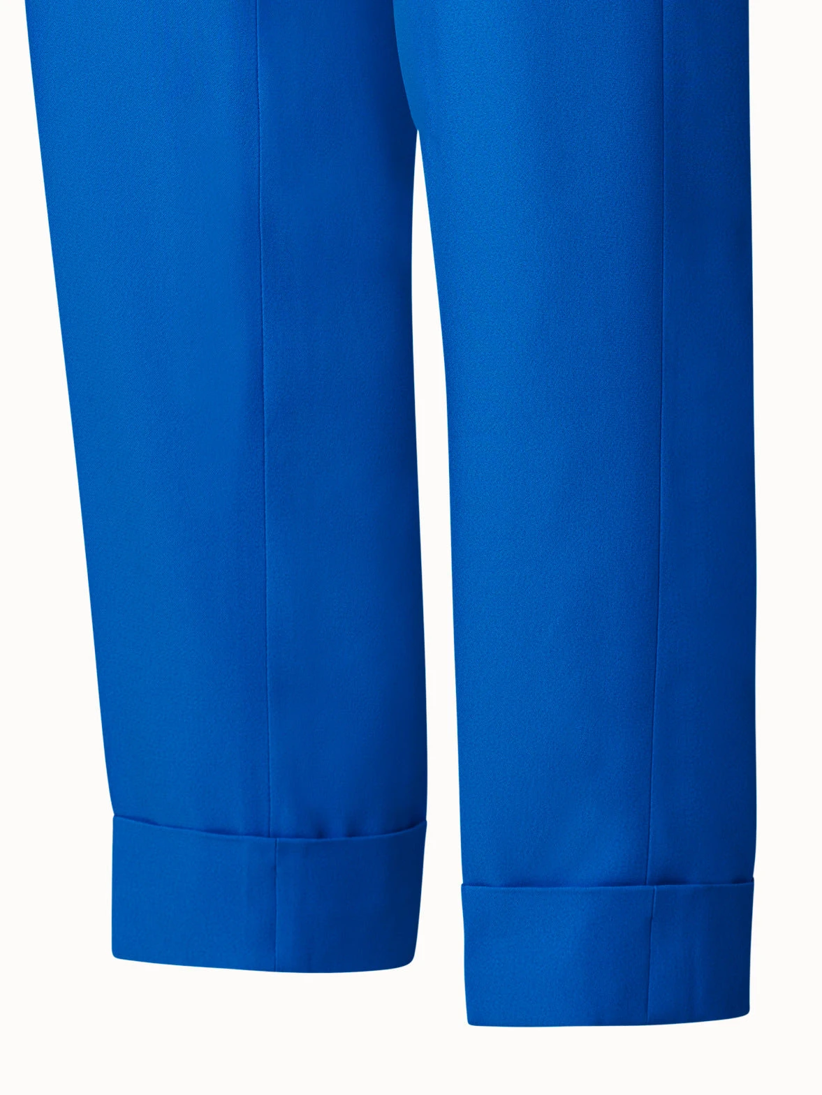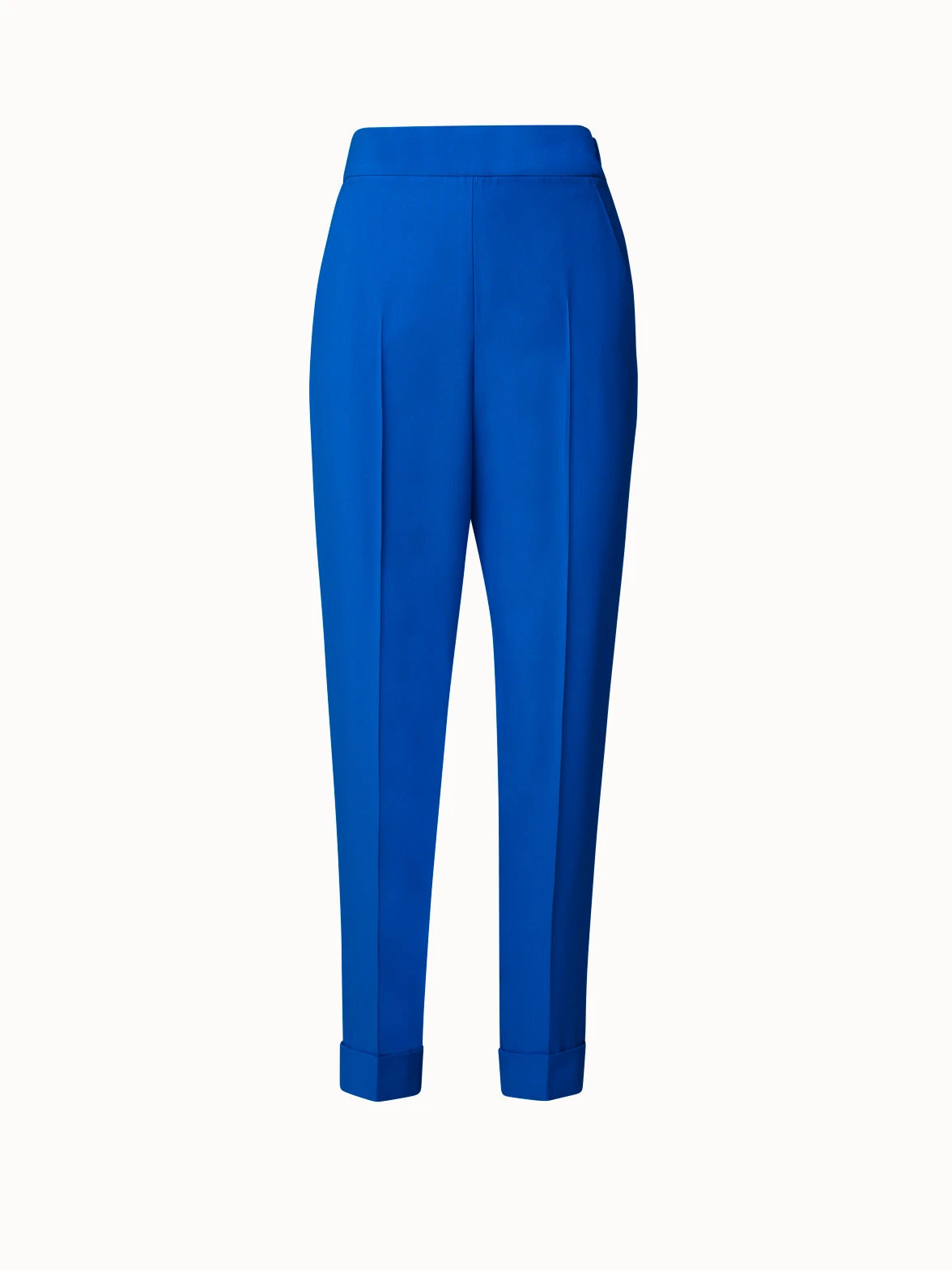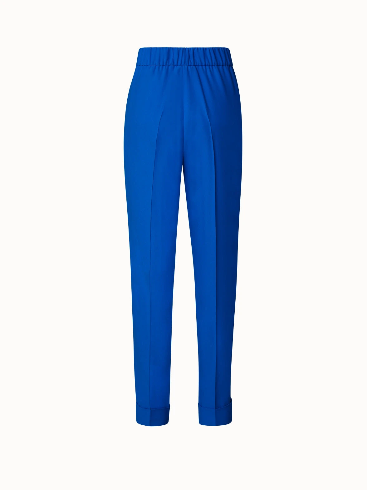 These Akris pants CHRIS are a versatile wardrobe staple that is as comfortable as it is stylish. Crafted in a fluid viscose crêpe, these pants can be dressy or casual. The tapered leg with cuffs provides a flattering fit. For added comfort, this style is designed with a back elastic waistband and hidden side zipper.