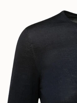 This seamless fine gauge cashmere silk knit sweater will hold up through the seasons. The material is soft and delicate against your skin, keeping you warm and comfortable as a layering piece or a timeless item on its own.