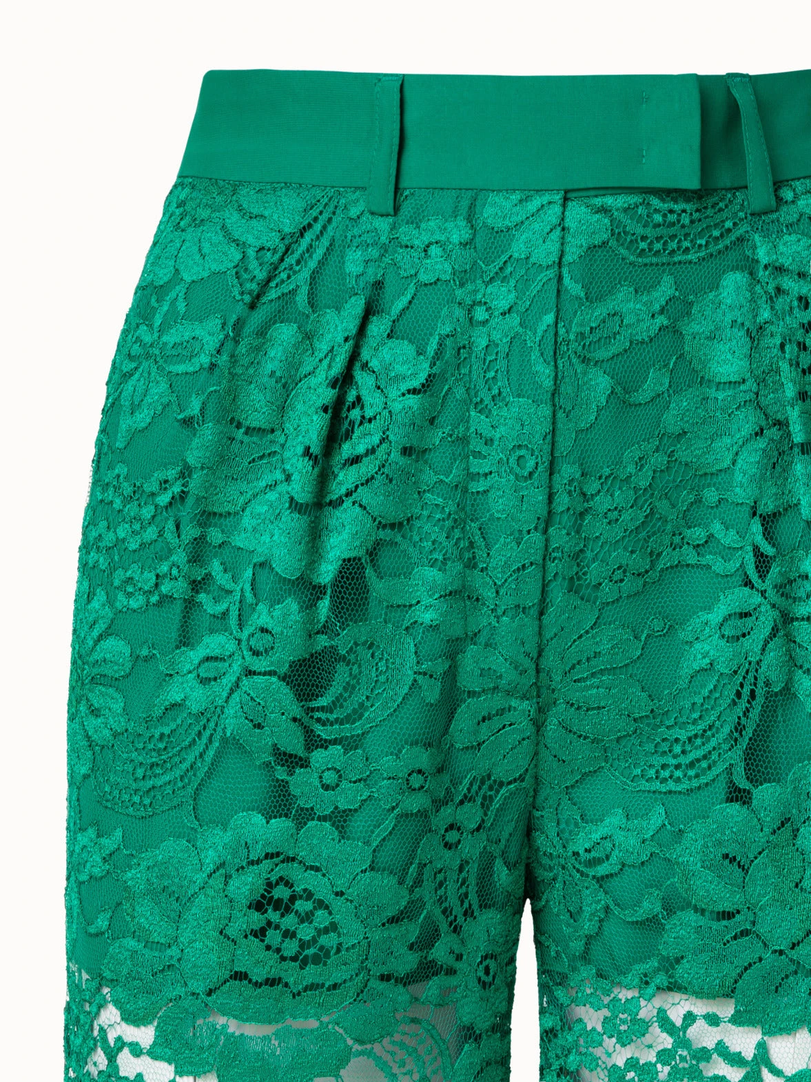 The Akris pants Fidelia are a revival of a vintage silhouette by creative director Albert Kriemler from the 1980s. It features a slightly tapered leg, creating a sleek shape. Waist pleats are a tailoring detail that ensures comfort while adding structure. These pants are crafted in a floral lace and feature a short lining, creating a stand-out style for warm weather occasions.