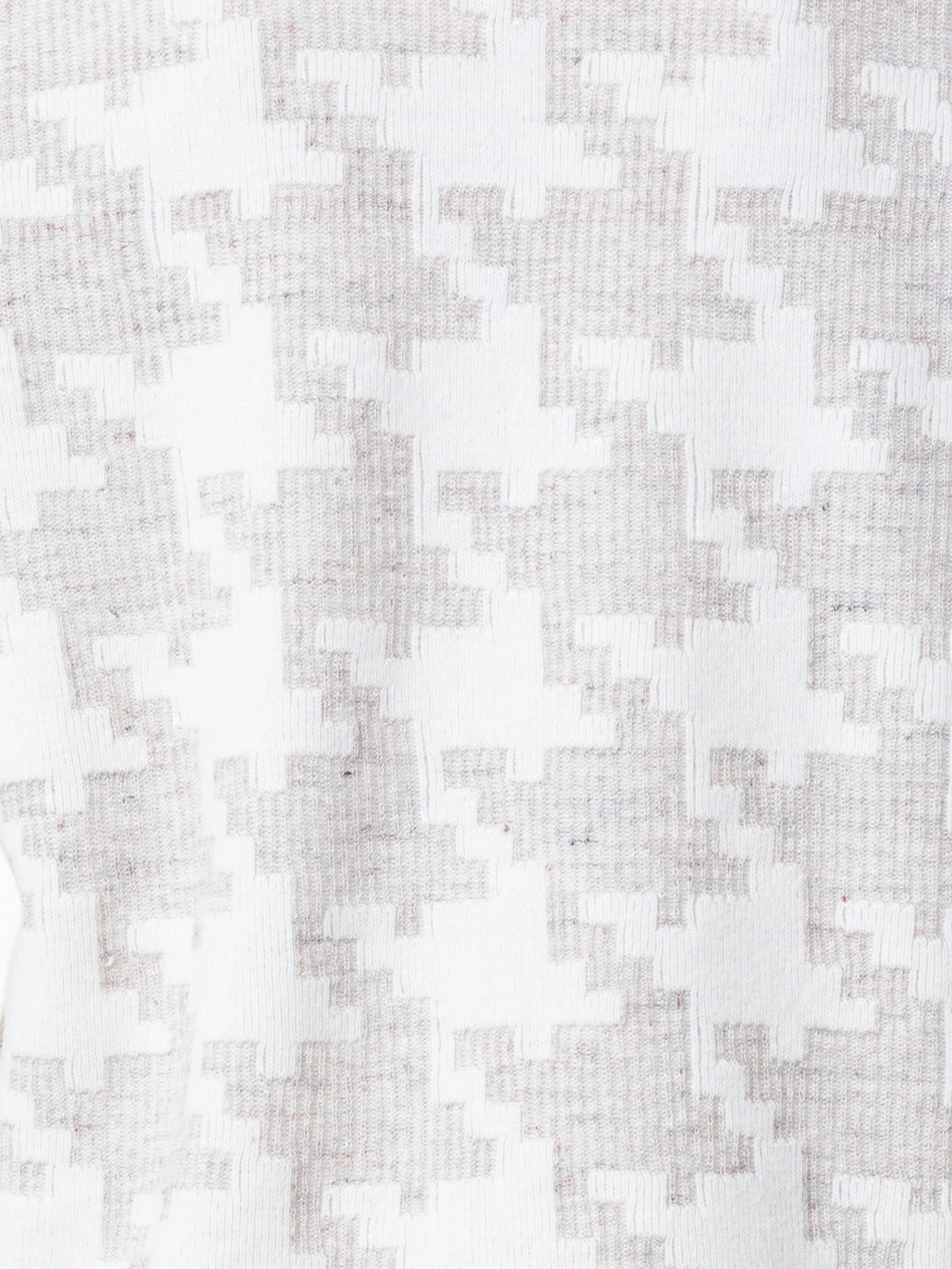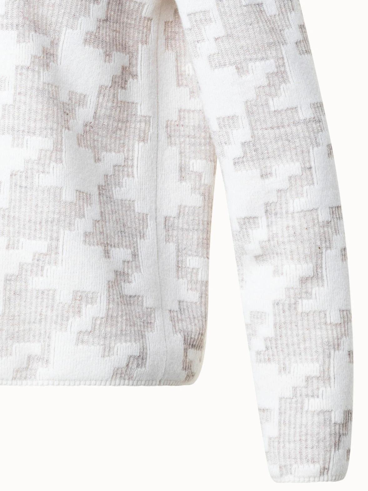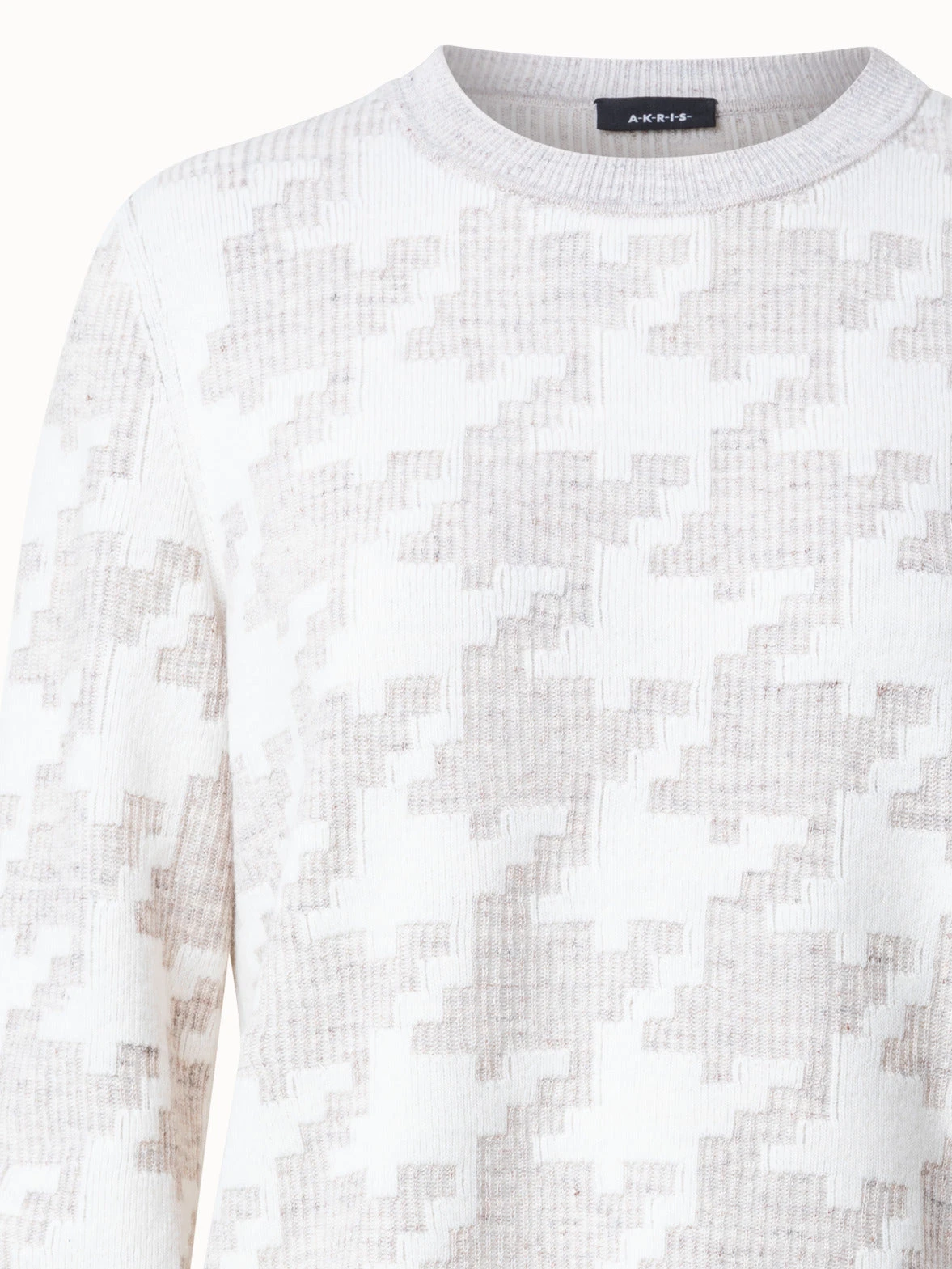 This Akris pullover is crafted in a linen wool cashmere cotton jacquard knit with a two-tone houndstooth design. The structured jacquard gives it a modern look and feel that is accentuated by the relaxed shape.