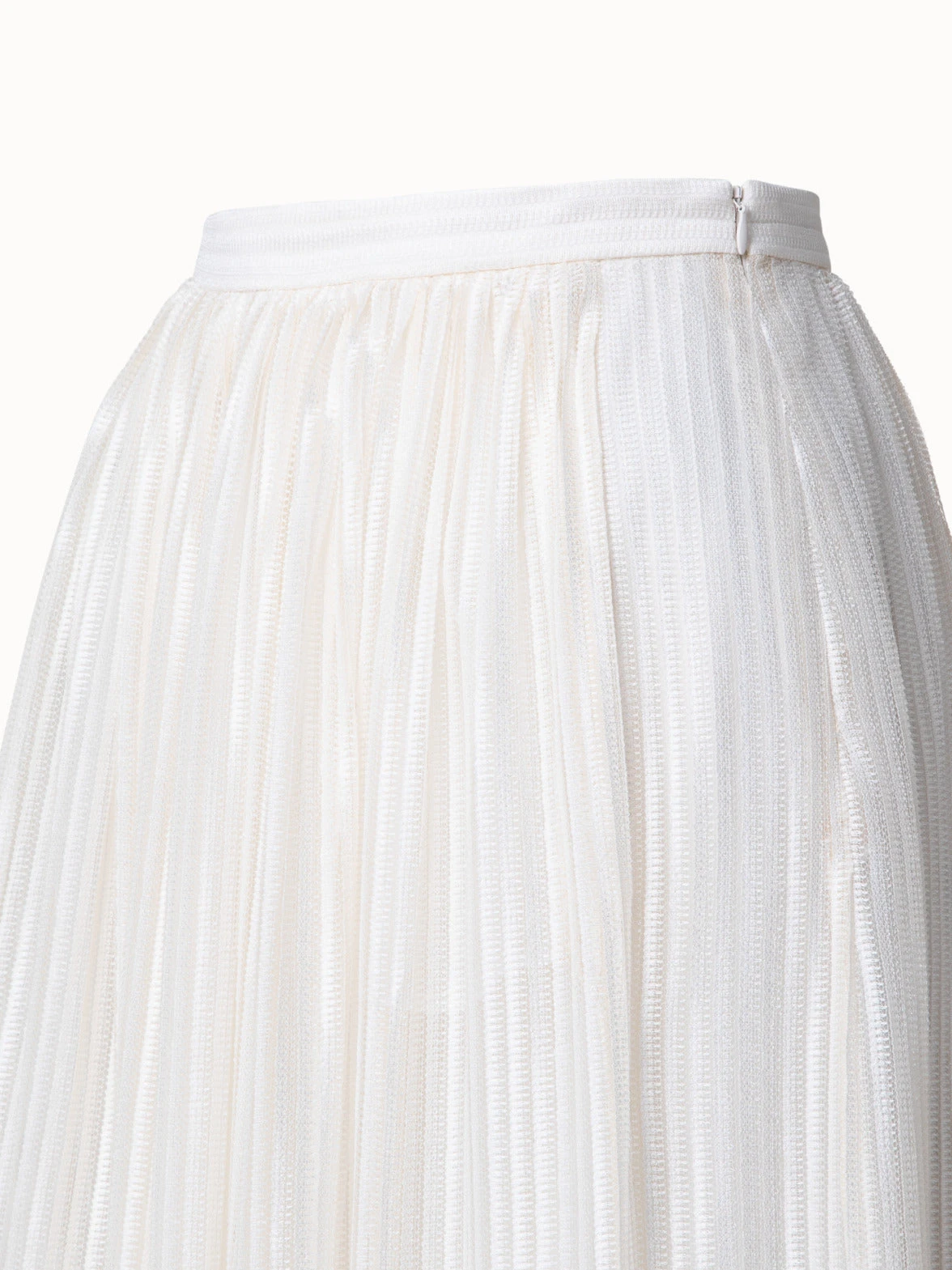 This Akris long skirt is crafted in a striped lace fabric, creating an elegant style that is light and airy, perfect for spring and summer. The A-line silhouette makes it comfortable and produces a beautiful motion as you move.