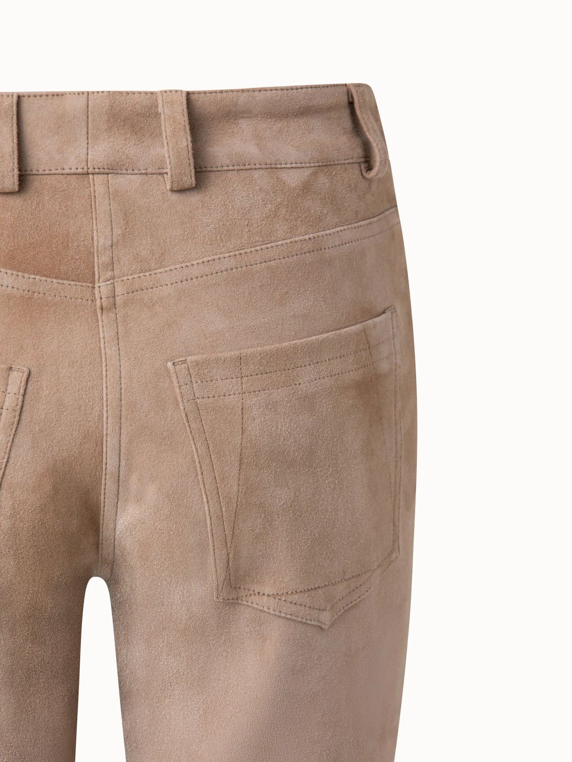 One of our bestselling silhouettes, the MAGDA pant is the perfect tailored trouser with a modern twist. This mid-rise style, cut from luxurious lamb suede stretch, is ultra-comfortable and flattering. The pant features five pockets, front closure, and a slim, ankle length leg.