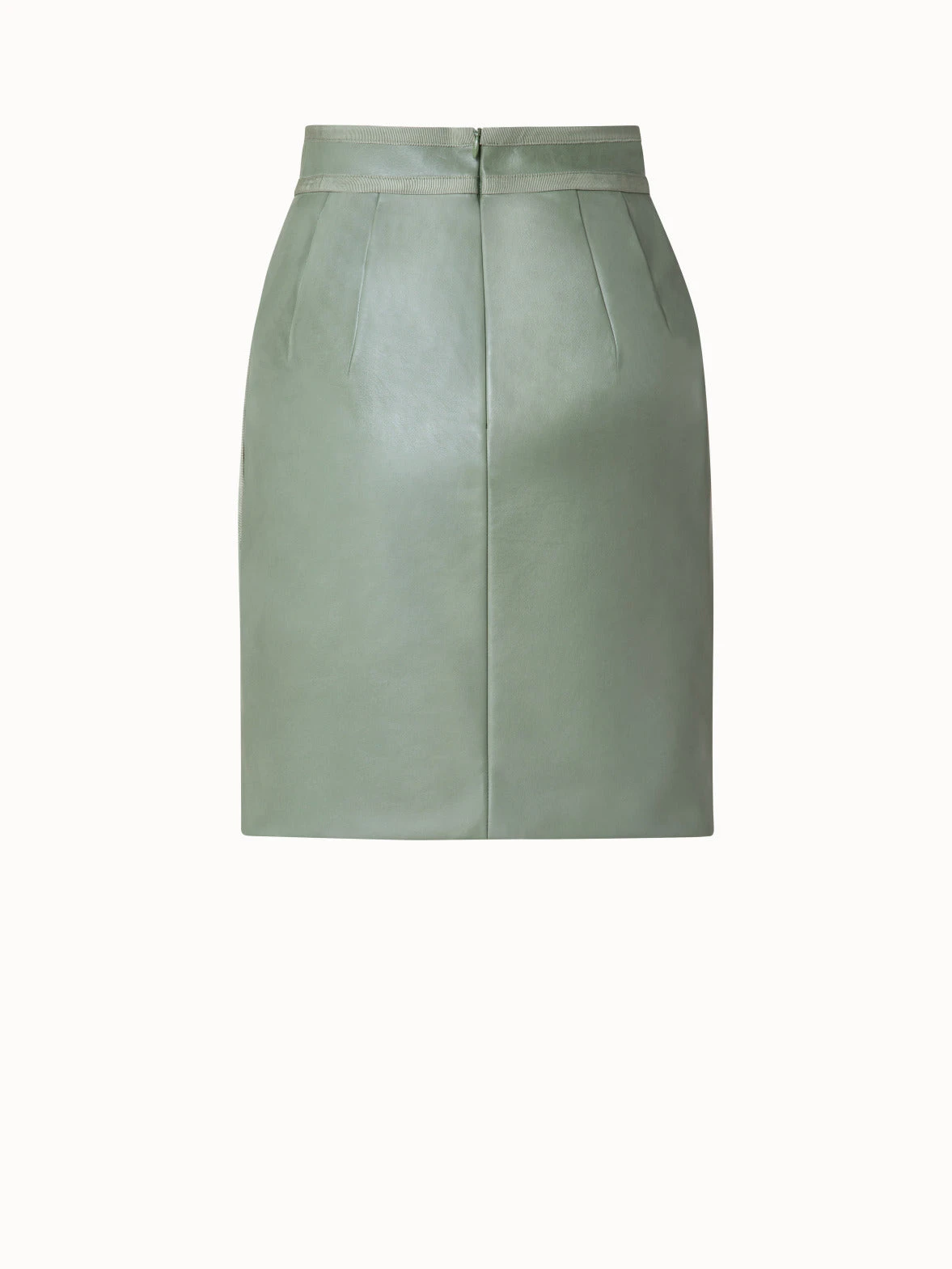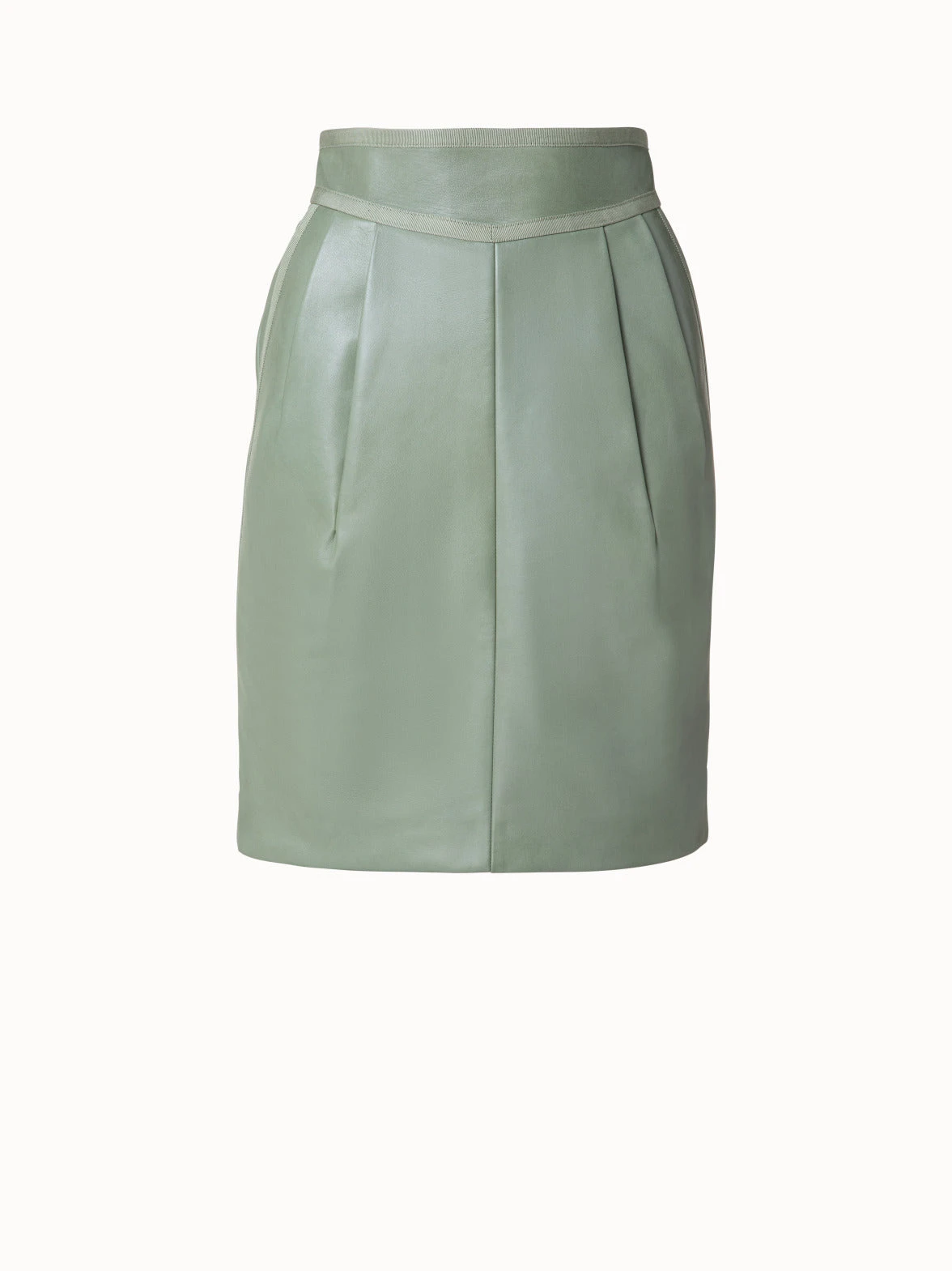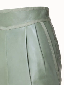 This Akris short skirt is designed for a high waist fit, with front pleats and a yoke that add structure and a unique look. The grosgrain trim completes this masterfully tailored style. This skirt is crafted in soft Nappa lambskin leather that creates a luxurious look and feel.