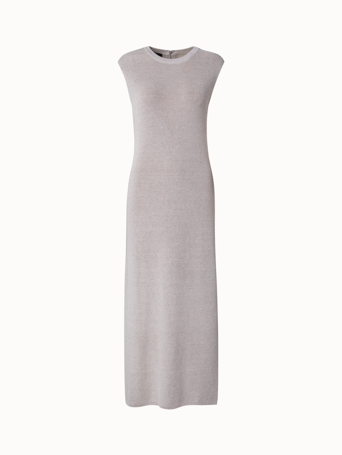 This Akris midi dress is crafted in a linen cotton blend knit, creating a sleek yet comfortable silhouette perfect for everything from a day at the beach to spring and summer occasions. The sleeveless silhouette features a side slit and a back zip.