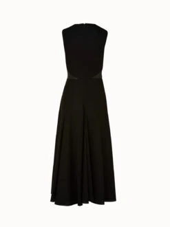 AKRIS Long Cotton Twill Dress With Leather Apron Bodice