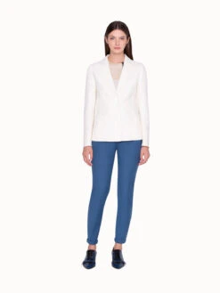 These Akris MAGDA slim leg pants are made from comfy silk stretch double face and have 5 pockets. Team yours with a fine stripe intarsia pullover in the same Ice tone for a refined off duty look that will also keep you warm and comfortable.