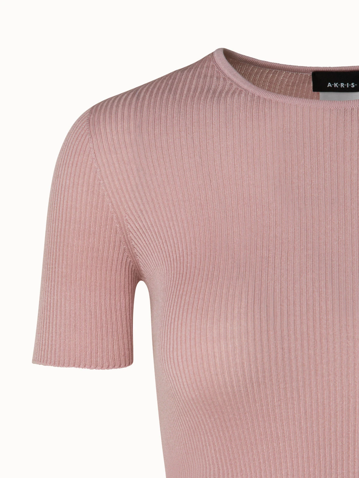 This knit top is impeccably crafted from silk and cotton in a seamless fine rib and cut to a fitted silhouette with a round neck and short sleeves. Indispensable to your layering edit as warmer days are coming and ideal to wear with separates.