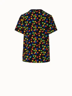 As part of the vintage inspiration of the Akris Spring 2023 collection and celebration of 100 years Akris, this blouse showcases a vibrant hearts Druck.