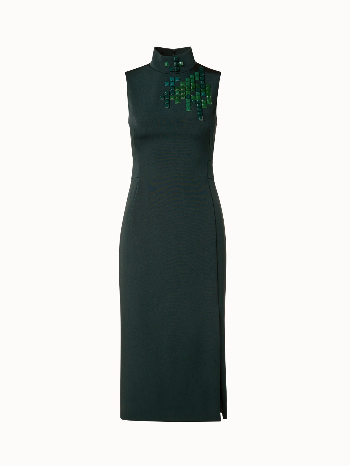 AKRIS Silk Stretch Crêpe Sheath Dress With Daffodils Stone Embellishment