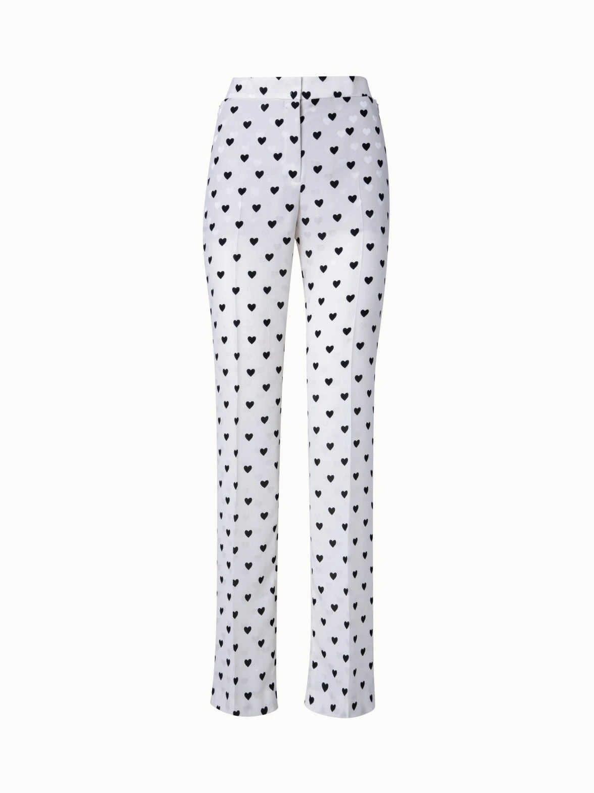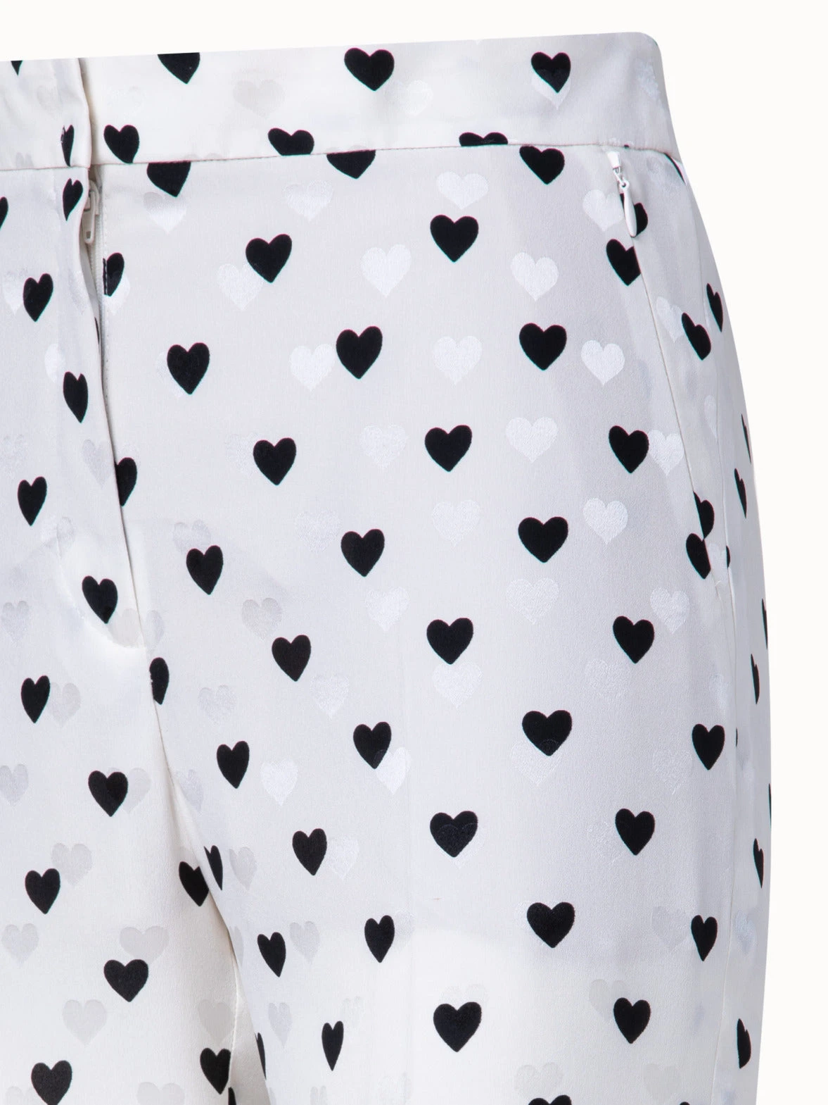 AKRIS Straight Leg Silk Pants With Hearts Jacquard And Druck