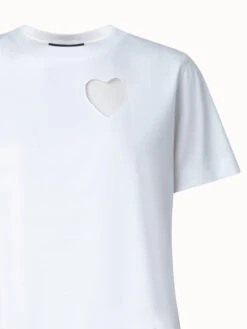 This Akris women’s t-shirt is crafted from soft cotton jersey and features a round neckline for a comfortable, classic fit. The shirt is designed with a heart-shaped tulle inset, adding a touch of feminine elegance to the overall look.