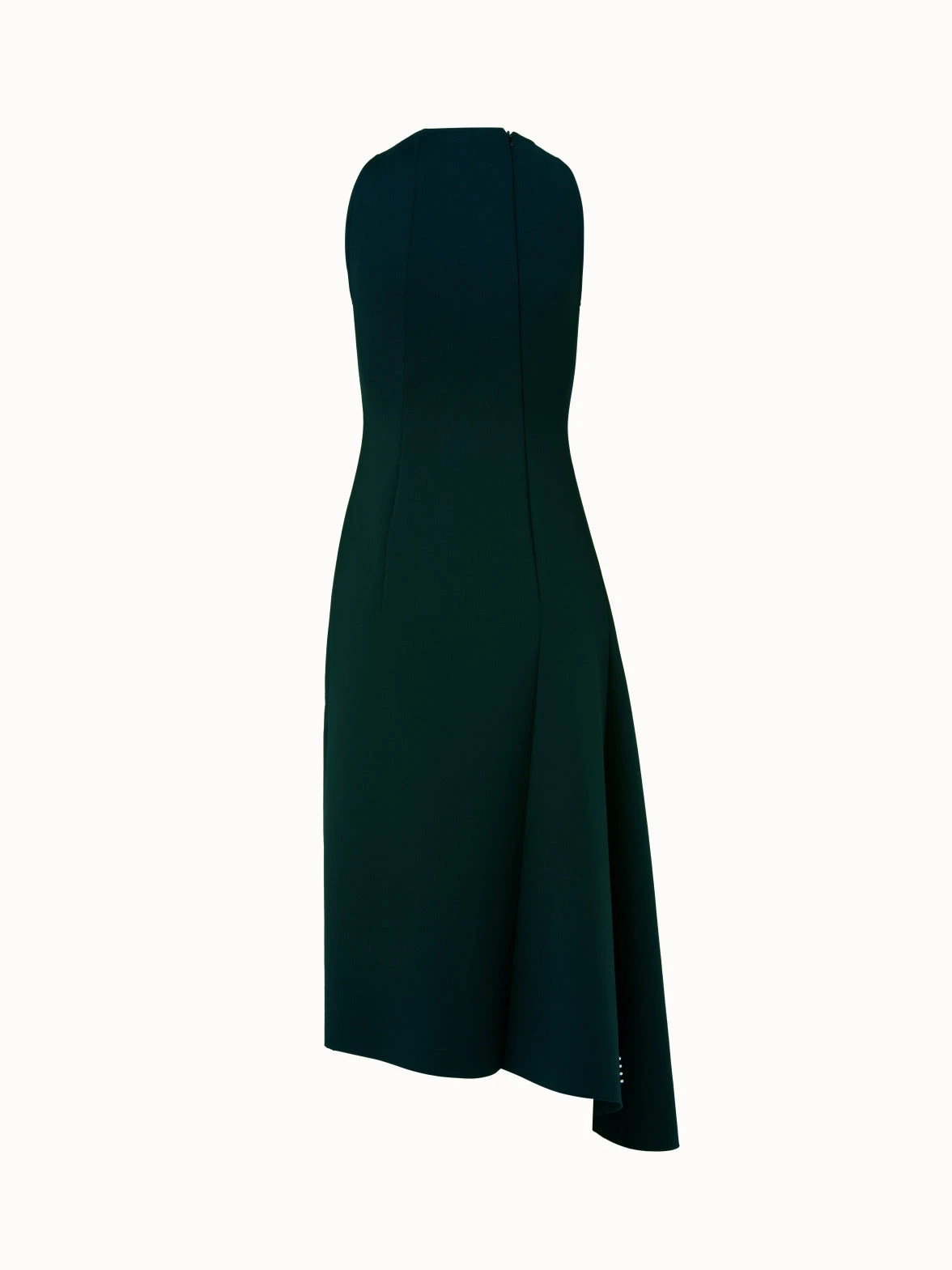 Effortlessly modern, this sleeveless techno neoprene dress is expertly tailored to the body with an asymmetrical side godet skirt featuring lasercut punchcard detail on the inset. Complete with a scoop neckline and back zip closure.