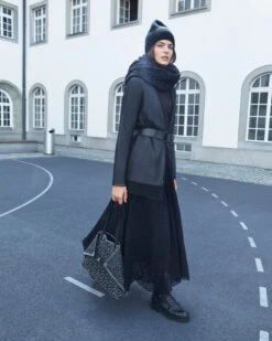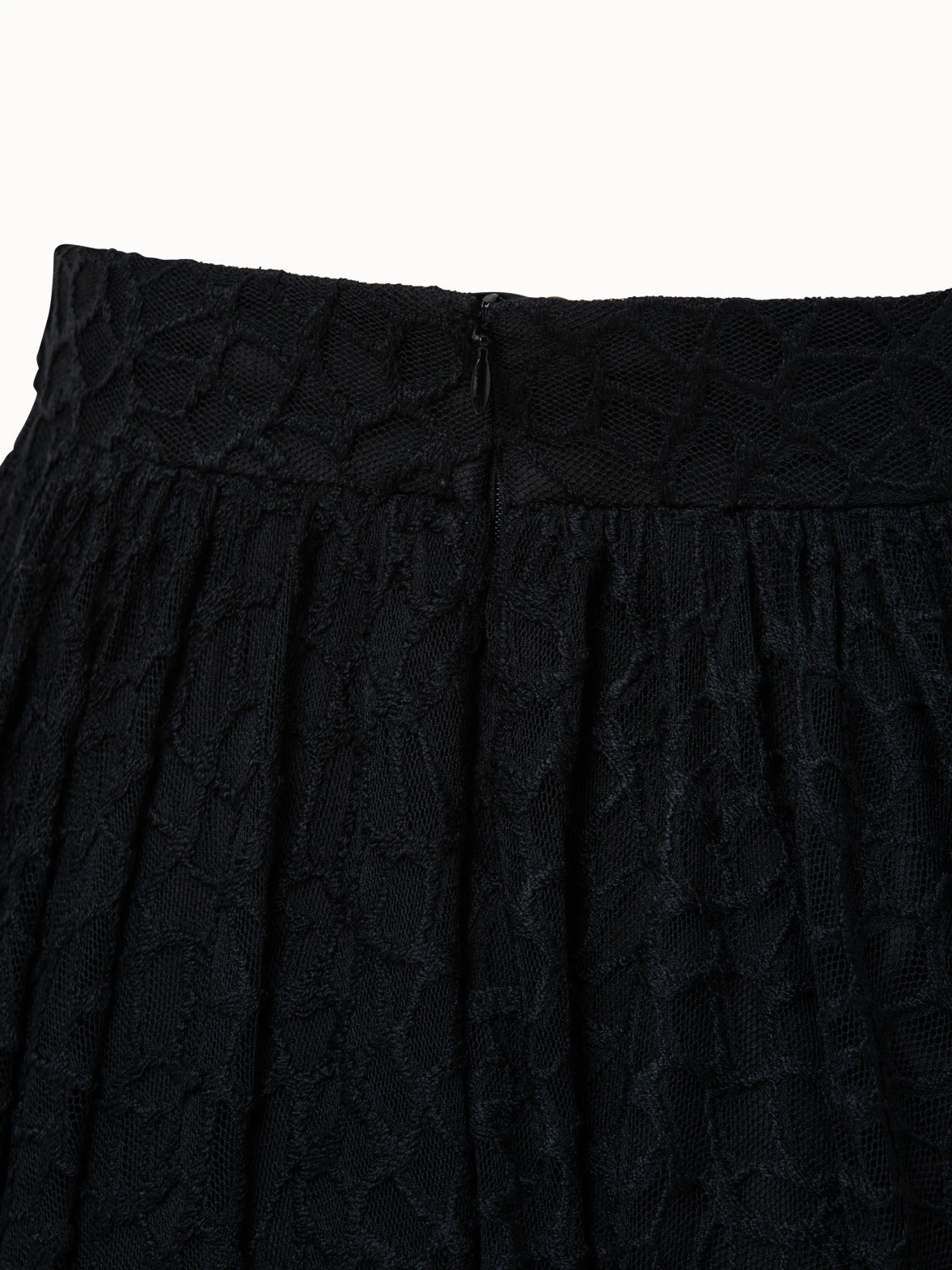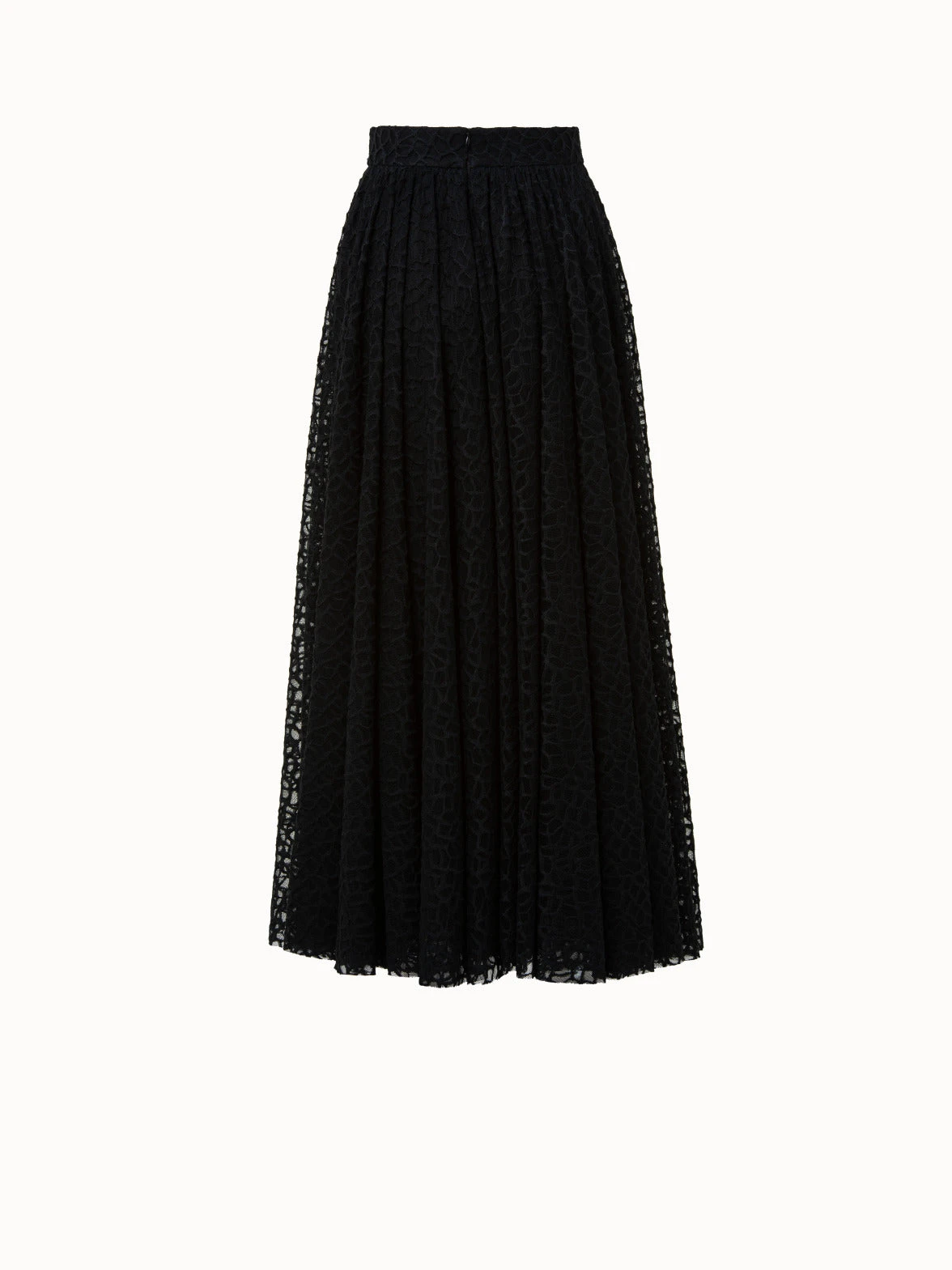AKRIS Tiled Roof Lace On Tulle Long Pleated Skirt