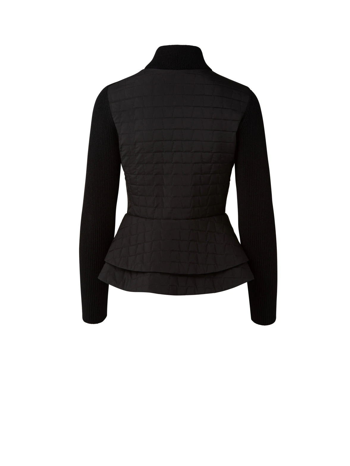 AKRIS Wool Ribbed Knit Jacket With Peplum Detail In Techno Quilted Trapezoid Fabric