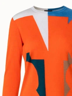 AKRIS Wool Silk Knit Composed Letters Intarsia Pullover