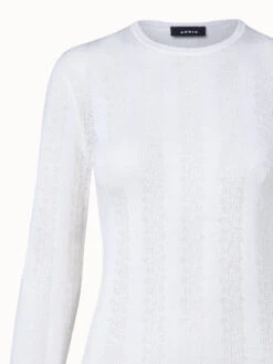 This Akris pullover is crafted in a wool and silk knit lace, creating subtle transparency in a striped pattern. Cut with a round neck and fitted silhouette, this knit pullover is an ideal modern and elegant underpinning.