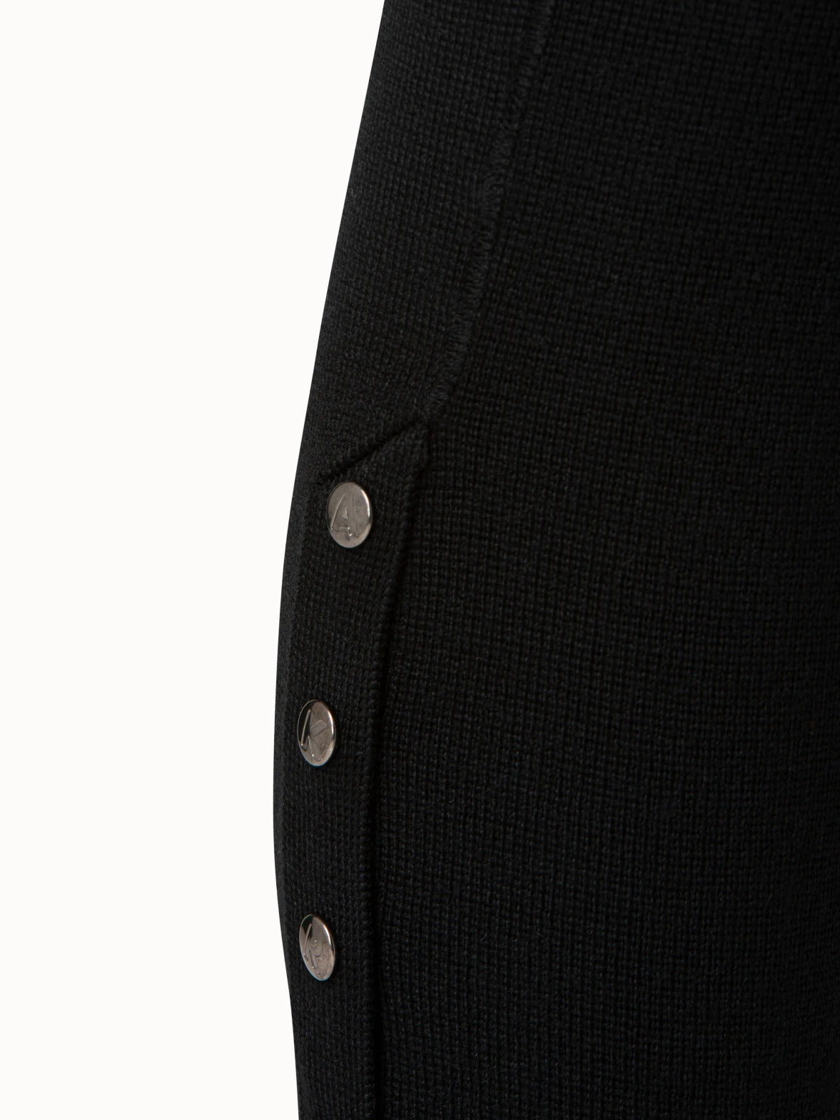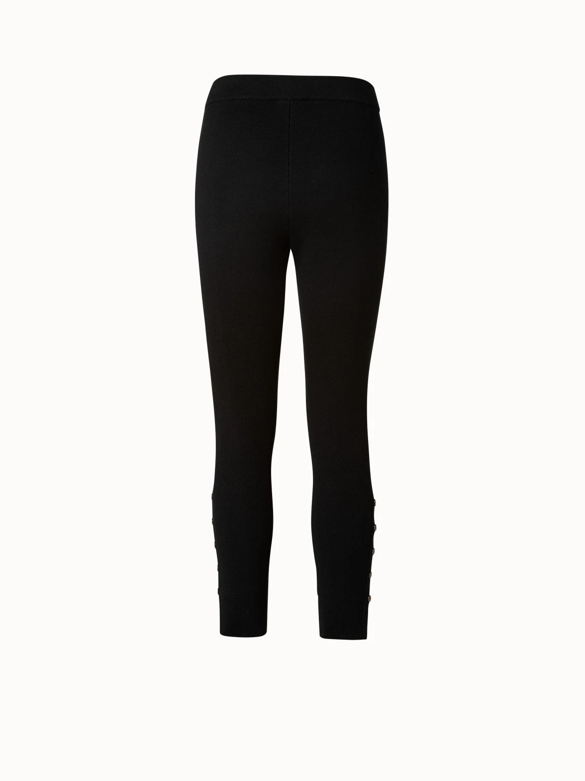 Discover a unique update to leggings with this Akris design in a luxuriously soft wool-silk blend knit with ankle snap detail. The ribbed waistband hugs the body comfortably, while the fine knit fabric creates an upscale look.