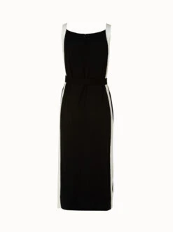 AKRIS Wool Silk Sleeveless Midi Dress With Contrast Tape Detail
