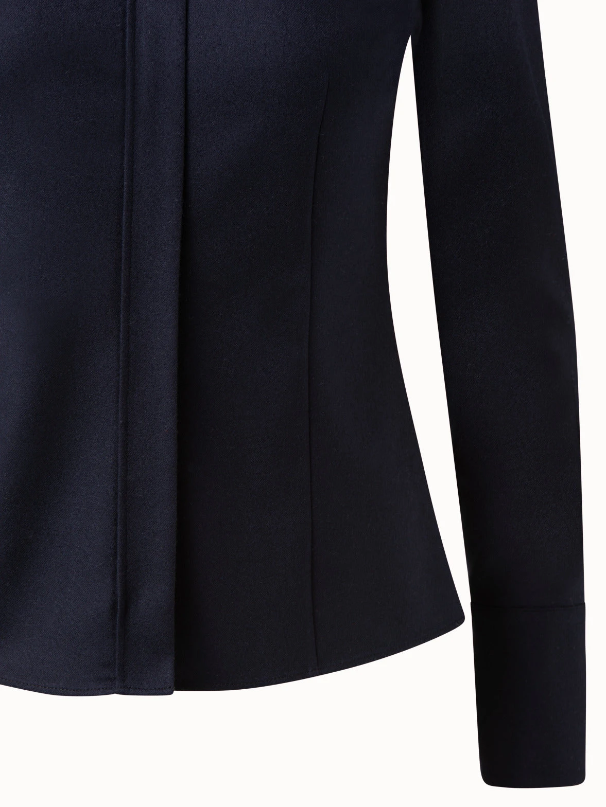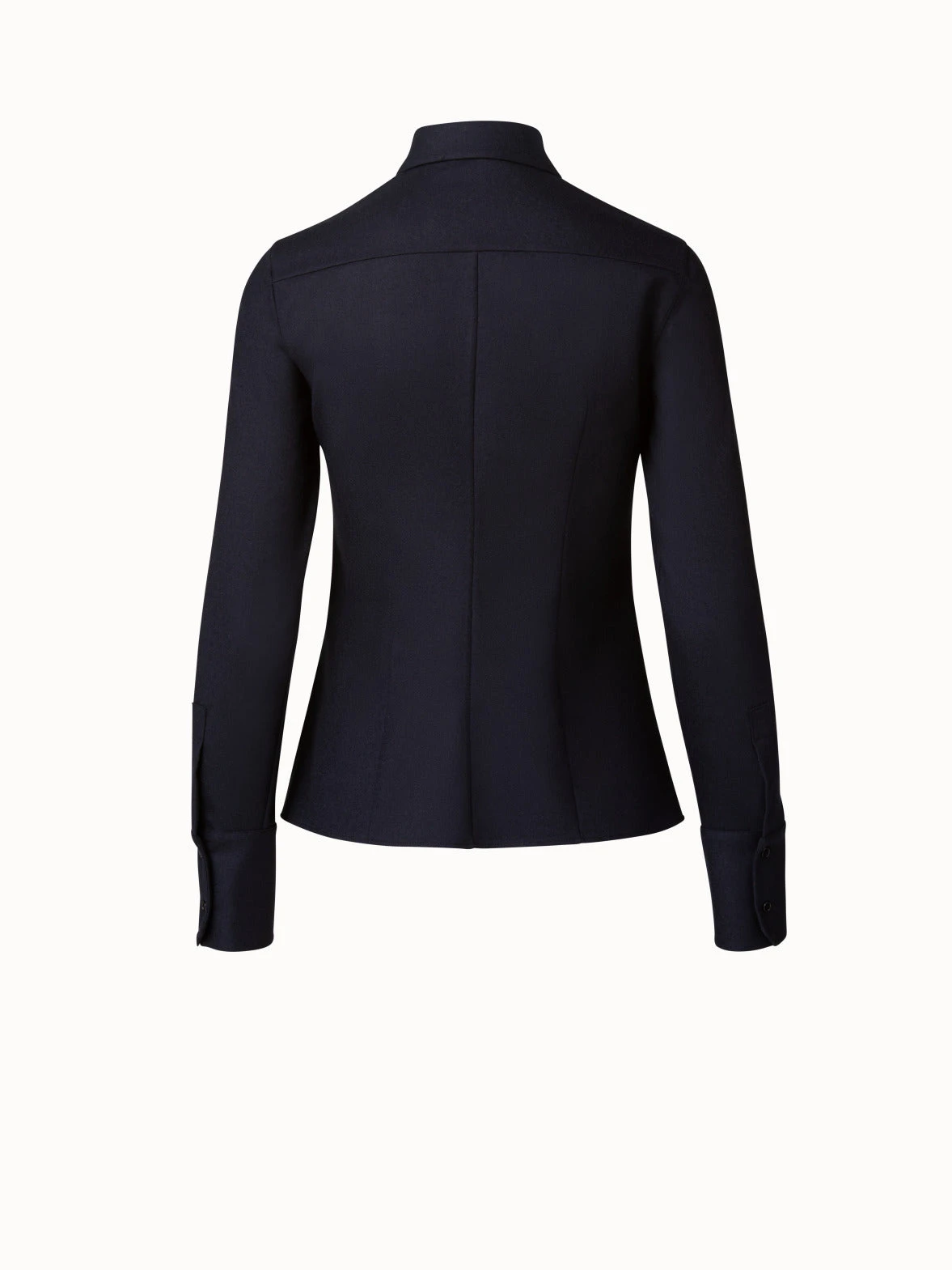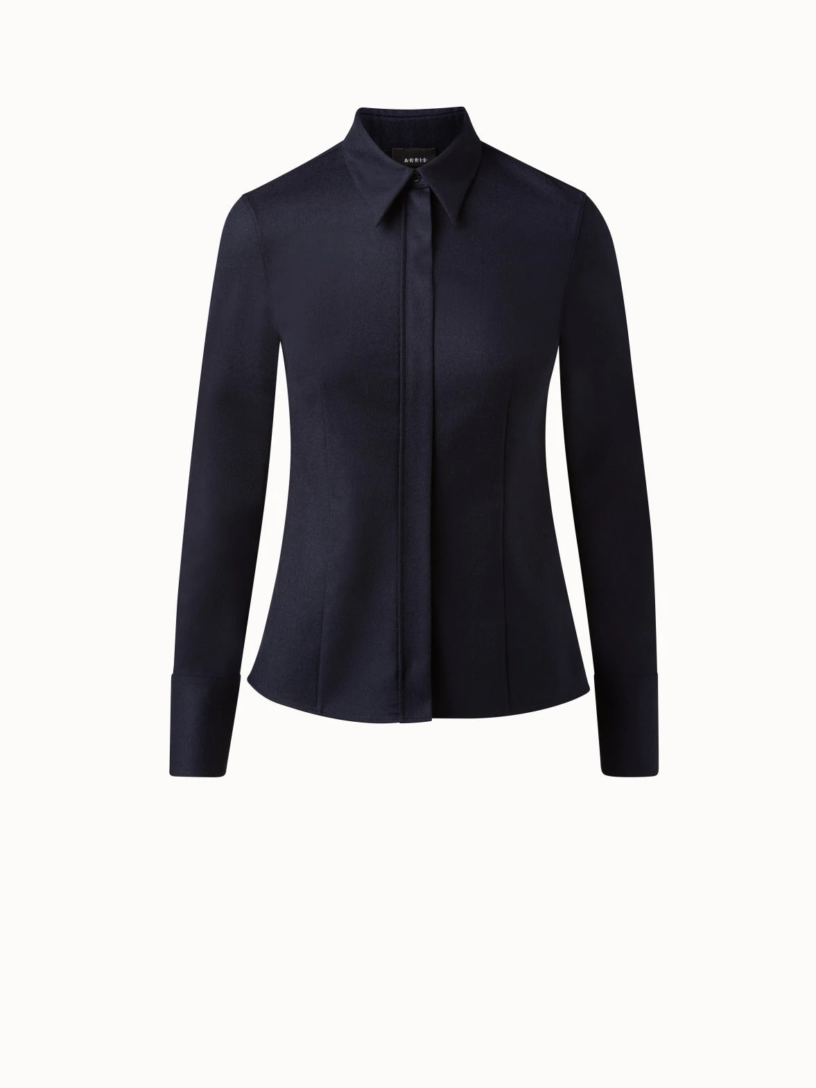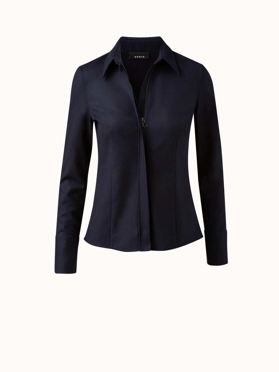 Update your winter workwear with this Akris blouse in wool stretch flannel. This fitted silhouette features a classic shirt collar with button and a concealed zip closure with a signature trapezoid puller.